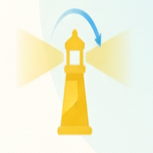 A restrained lighthouse signals quiet awareness: present long before danger, guiding without intrusion.